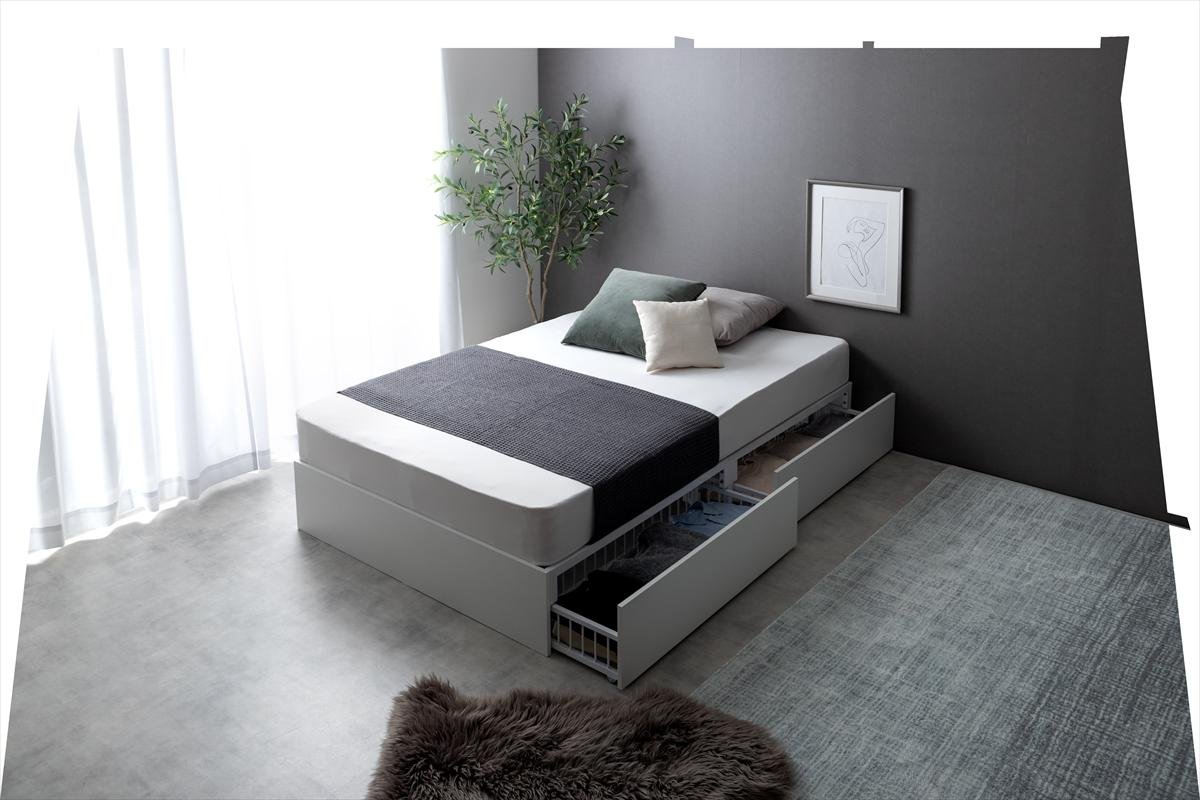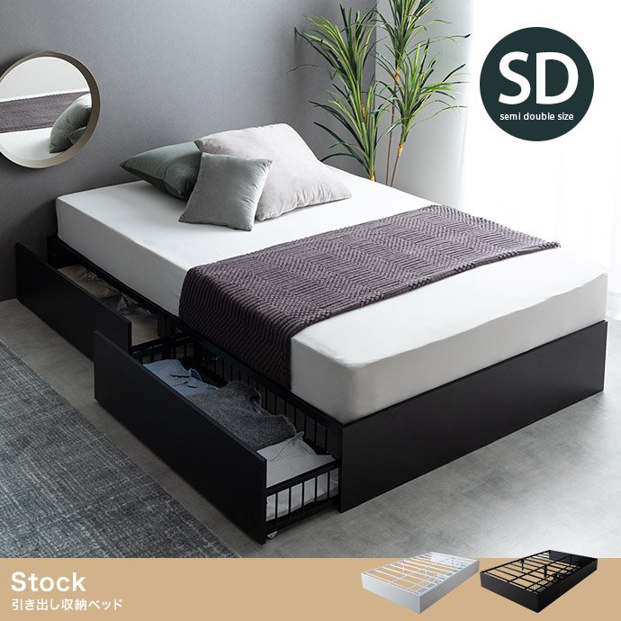 スタイリッシュな美しさとパイプの耐久性を兼ね備えた『Stock(ストック)』引出し収納ベッド