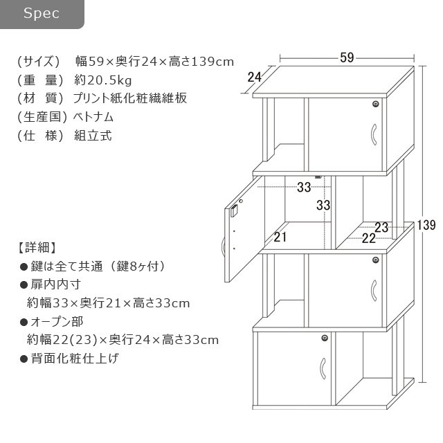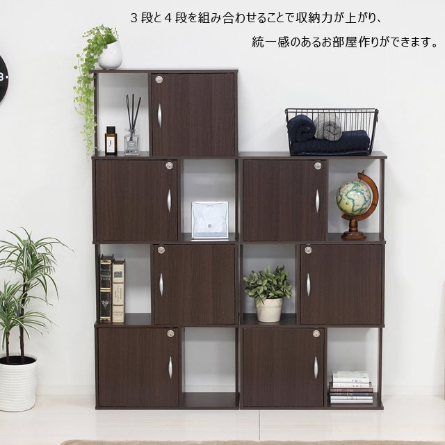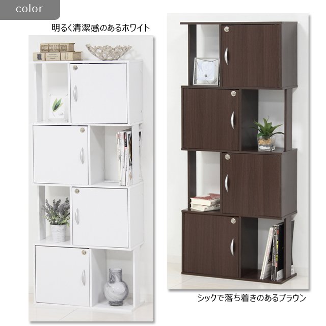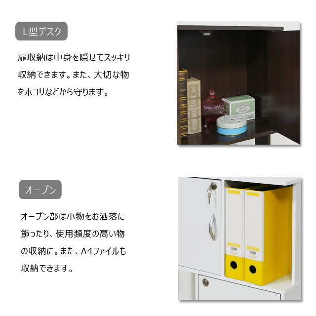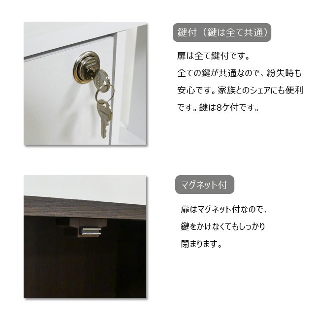 プライバシーを守る安心の鍵付。扉収納とオープン収納の組み合わせがスタイリッシュなラックです。