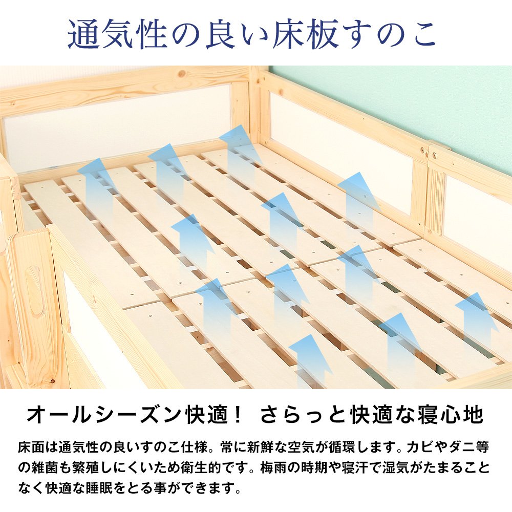 ・材質:フレーム/パイン材(ラッカー塗装)、プリント紙化粧繊維板・すのこ/合板、パイン材(無塗装)