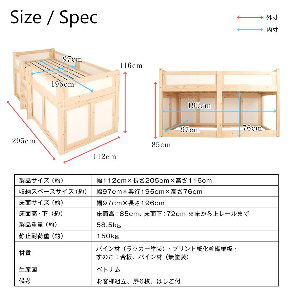 ぼくの・わたしの専用秘密基地。収納物が隠せる扉付コンパクトハイベッド。